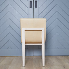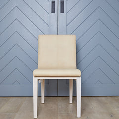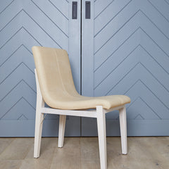This leather chair offers soft beach tones with a touch of luxury. With the added detail of a sloped cushion and the flexibility of an armless chair it is sure to be a perfect addition to any dining room.
